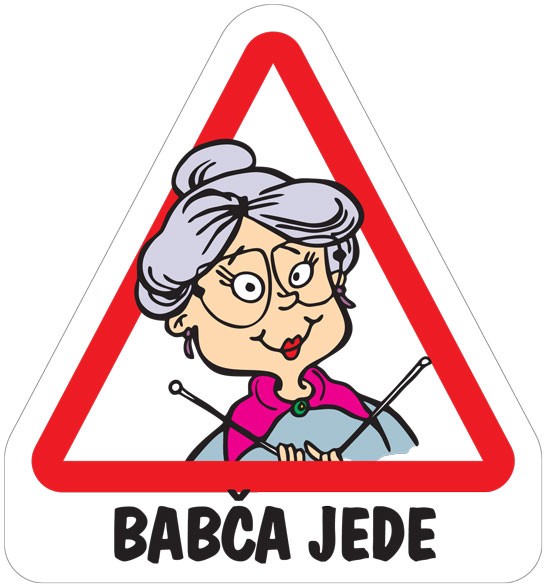 Značka Babča jede vtipně poukazuje na „starší“ řidičku.